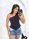 Conjunto shorts e Cropped ciganinha lastex manga babado flare cetim plissado